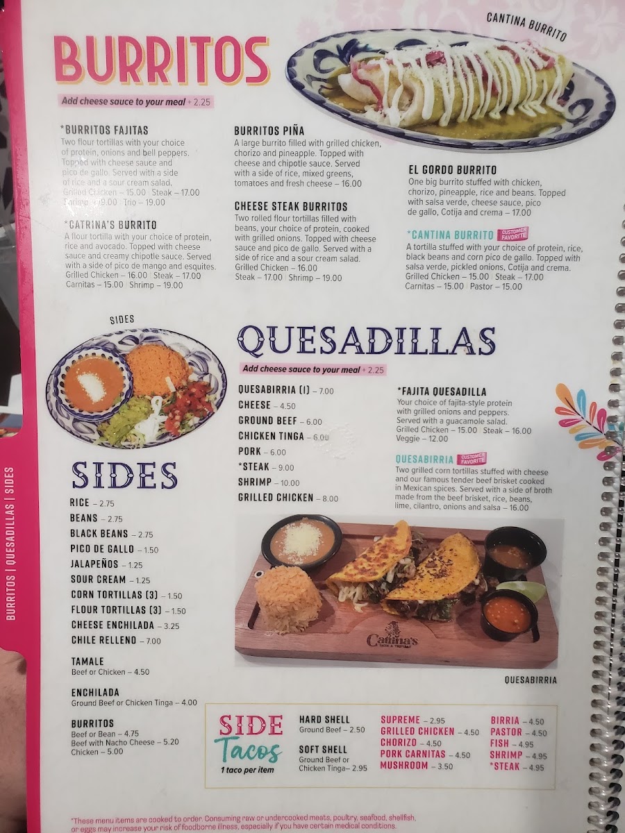 The menu at Catrinas Tacos & Tequilas reflects a vibrant yet approachable Mexican dining experience, offering a range of flavorful dishes and carefully crafted drinks. It features a mix of comforting favorites and creative twists, suited for casual meals or lively gatherings.